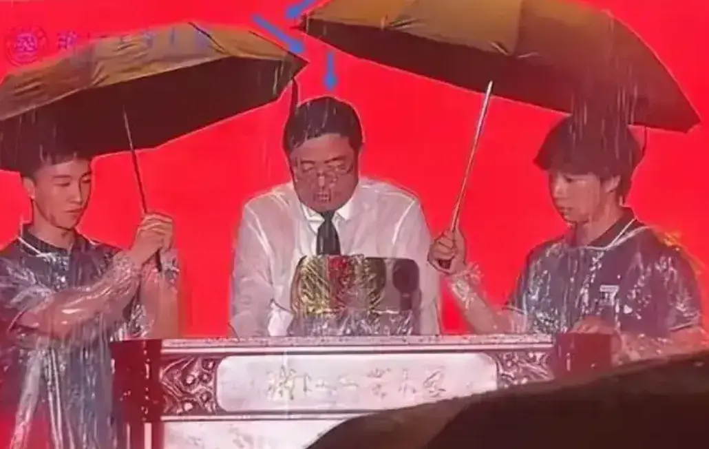 可能校长觉得发言一小会儿就能结束,于是拒绝了工作人员递来的雨衣。按说这画面本该是“风雨无阻育桃李”的励志剧本,结果台下冲上来两个撑伞的“救兵”学生,愣是把剧情改写成了喜剧片。